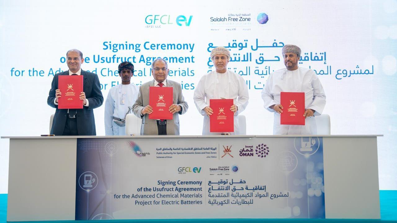 GFCL EV, a subsidiary of India-based InoxGFL Group, will construct a facility in the Salalah Free Zone to produce chemical materials used in the manufacturing of advanced batteries